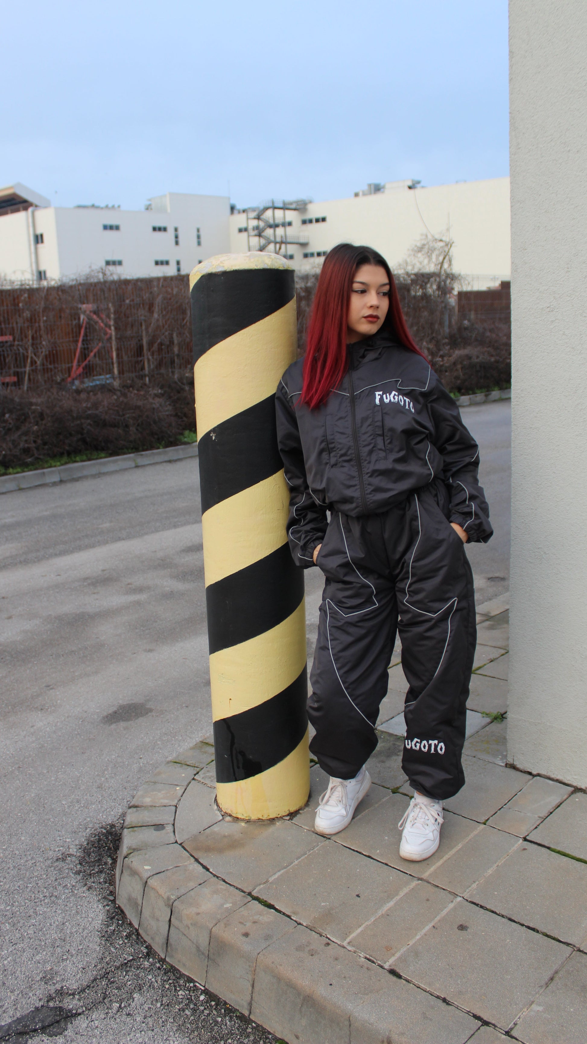 Дизайнът се отличава с прецизно разположени рефлектиращи контурни линии, които подчертават формата на екипа и добавят модерен, техничен акцент. Брандингът FUGOTO и характерните надписи придават силна street идентичност и завършен вид.